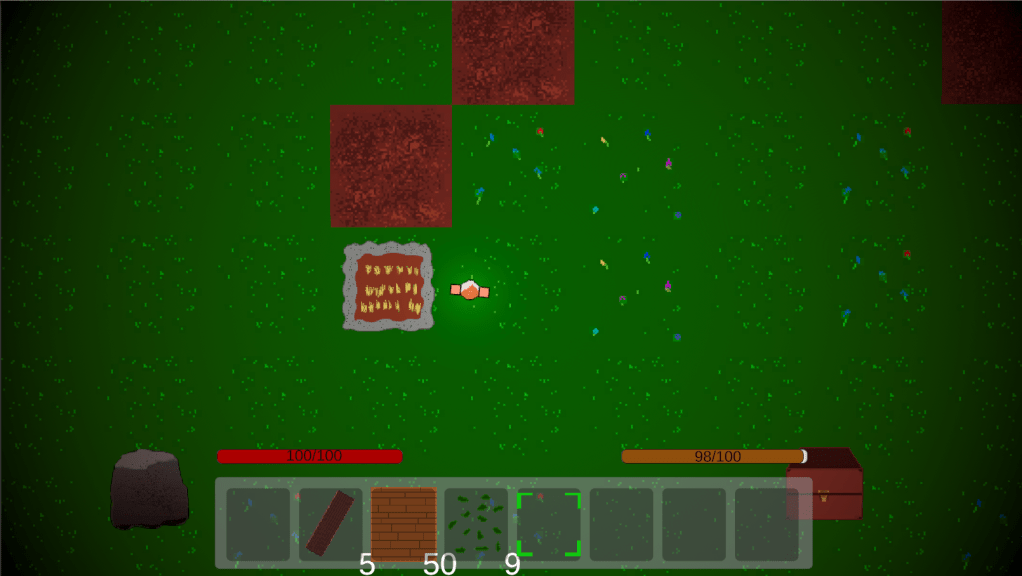 You spawn in a randomly generated world and have to harvest resources to build a kingdom, eventually, you’ll be able to get villagers to help you harvest and grow (Once I get around to programming it)