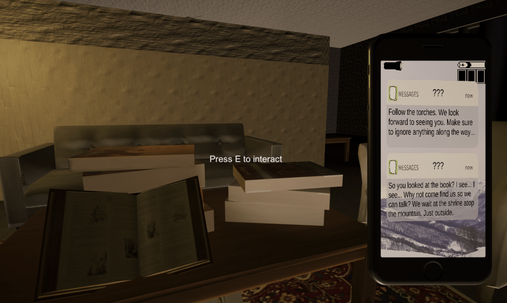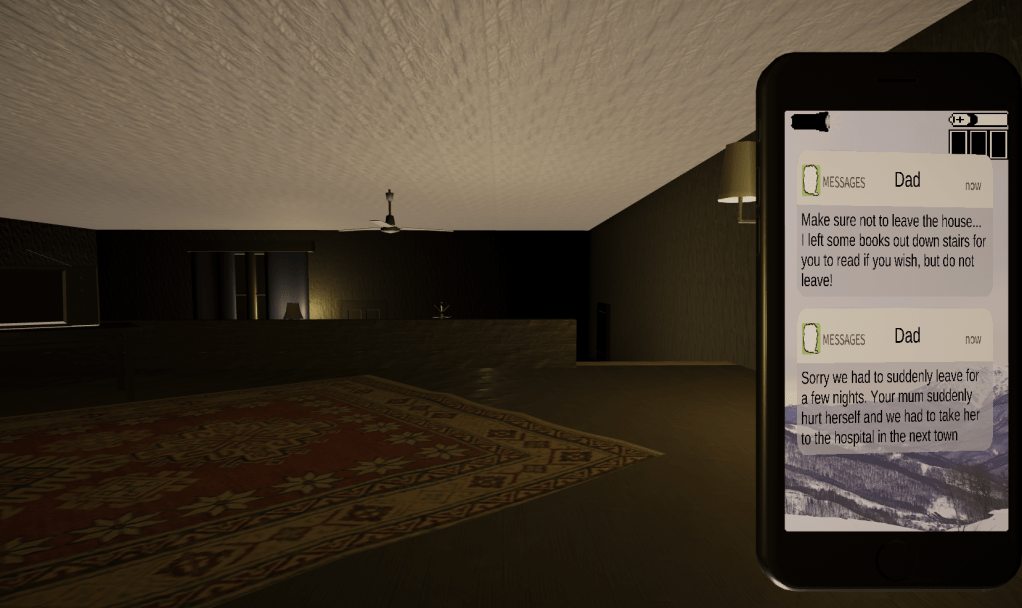 Alongside the world, the player has a mobile phone with them. This phone acts as their flashlight but only has a limited charge. If the player’s phone runs out of charge, they can’t use their light or receive any text messages!